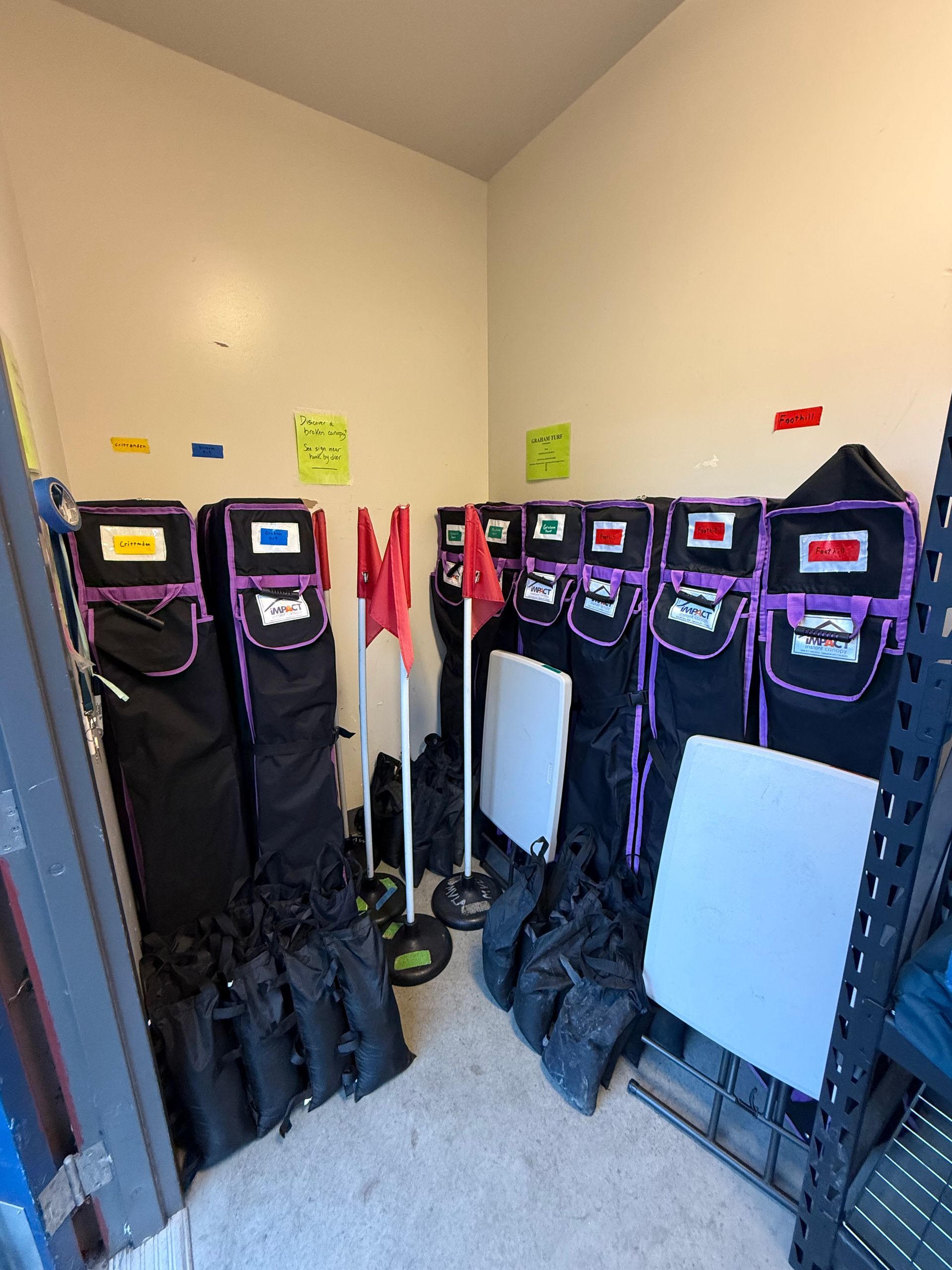 - ECNL (Equipment for Foothill is marked with RED TAPE)