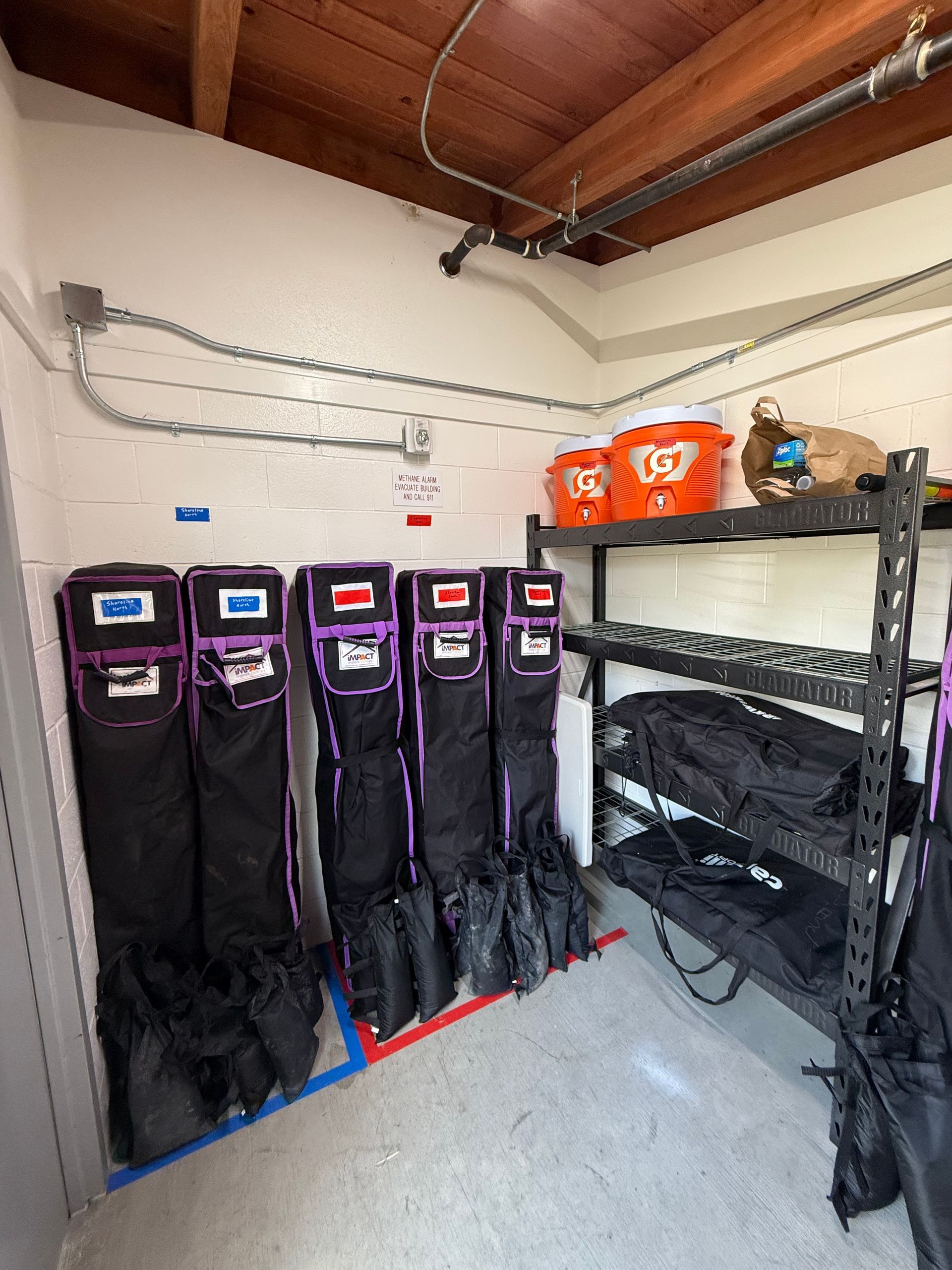 - Return the corner flags, turf bases and goal anchor weights to the Shoreline shared storage room using the procedure above and ensure that the room is LOCKED. See “Setup” instructions on how to obtain the key.